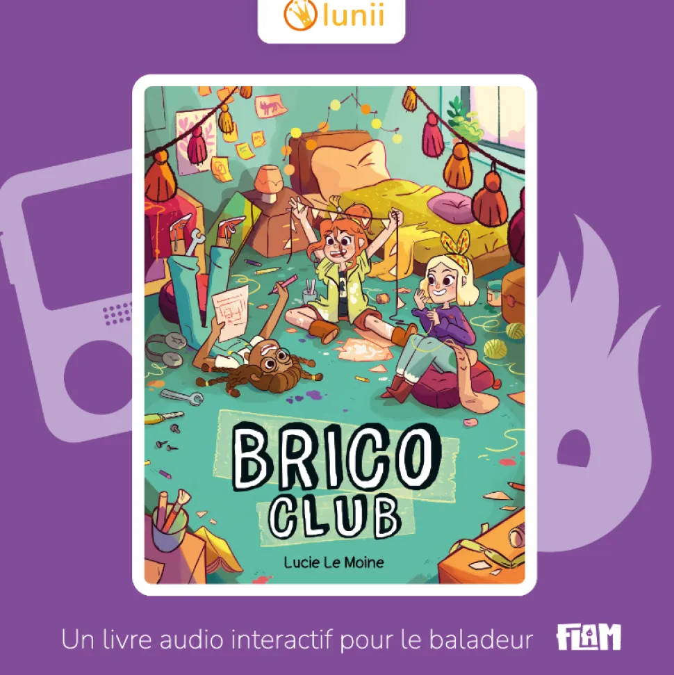 Marta, Lily et Nour sont des pros du Do It Yourself. Dès qu’elles le peuvent, elles utilisent leur talent pour aider les habitants de leur ville, Belle-Rivière. Elles connaissent tout le monde, de la propriétaire du salon de thé cosy, aux mamies bavardes de la grand-place en passant par les gérants de l’hôtel le plus cool des environs. Ensemble, elles forment le Brico Club.Produit à utiliser avec le baladeur FLAM de Lunii