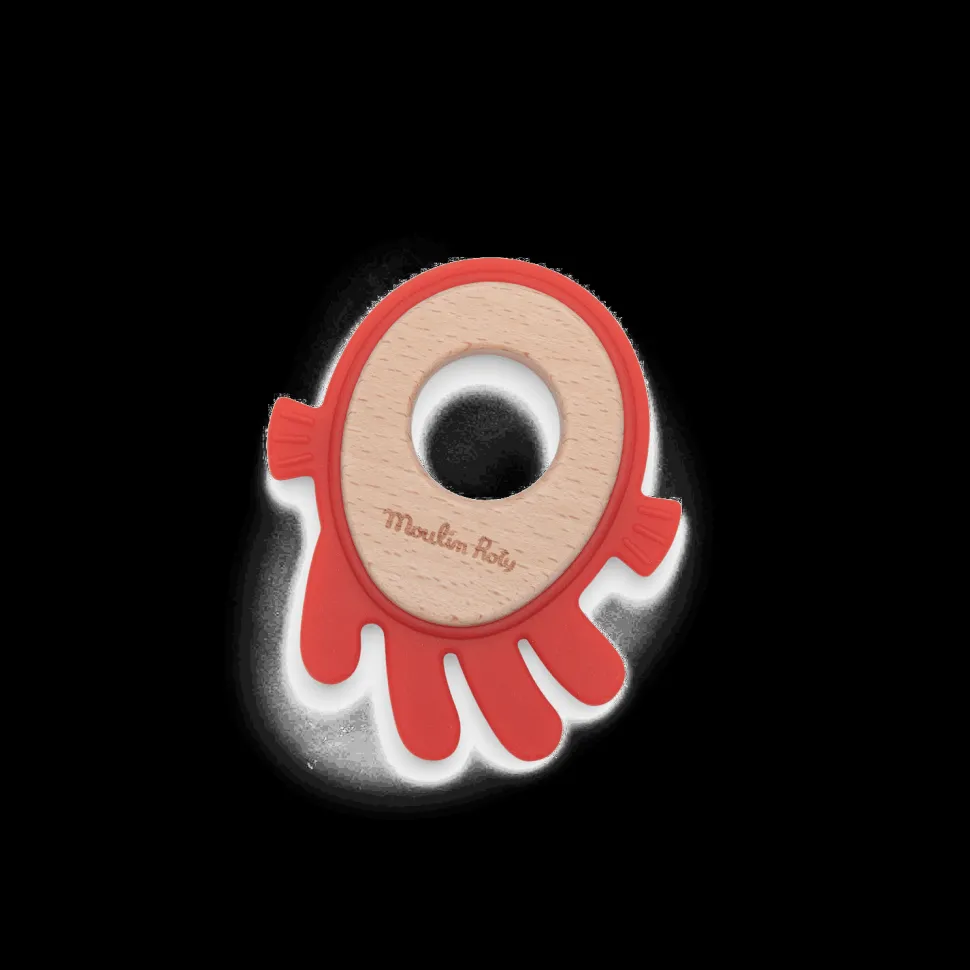 De quoi jouer ou mâchouiller pour bébé avec cet Hochet de dentition poulpe en bois et silicone. Bi-matière, il permet à bébé de choisir ce qui soulagera le mieux ses gencives douloureuses. Avec sa forme, il est facile à saisir par les petites mains.
