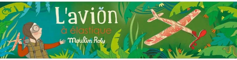 Avion en balsa imprimé rouge, à monter, avec hélice et propulsion élastique autour du thème illustré «à la découverte de la jungle». C’est parti pour l’aventure ! Dès 6 ans.