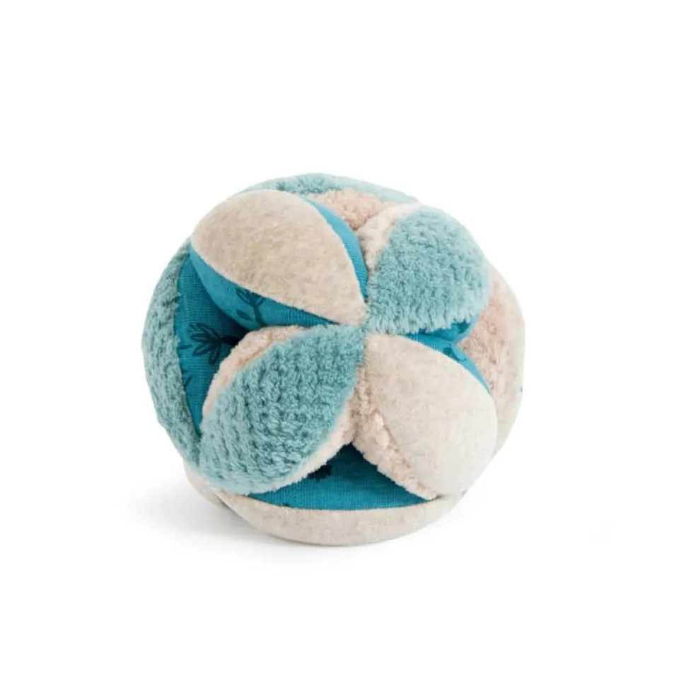 Aussi appelée balle de préhension, elle offre des côtés de couleurs et matières différentes pour stimuler la vue et le toucher. Bébé y glissera ses petits doigts pour apprendre à saisir et secouer les objets… il entendra alors le grelot chanter !