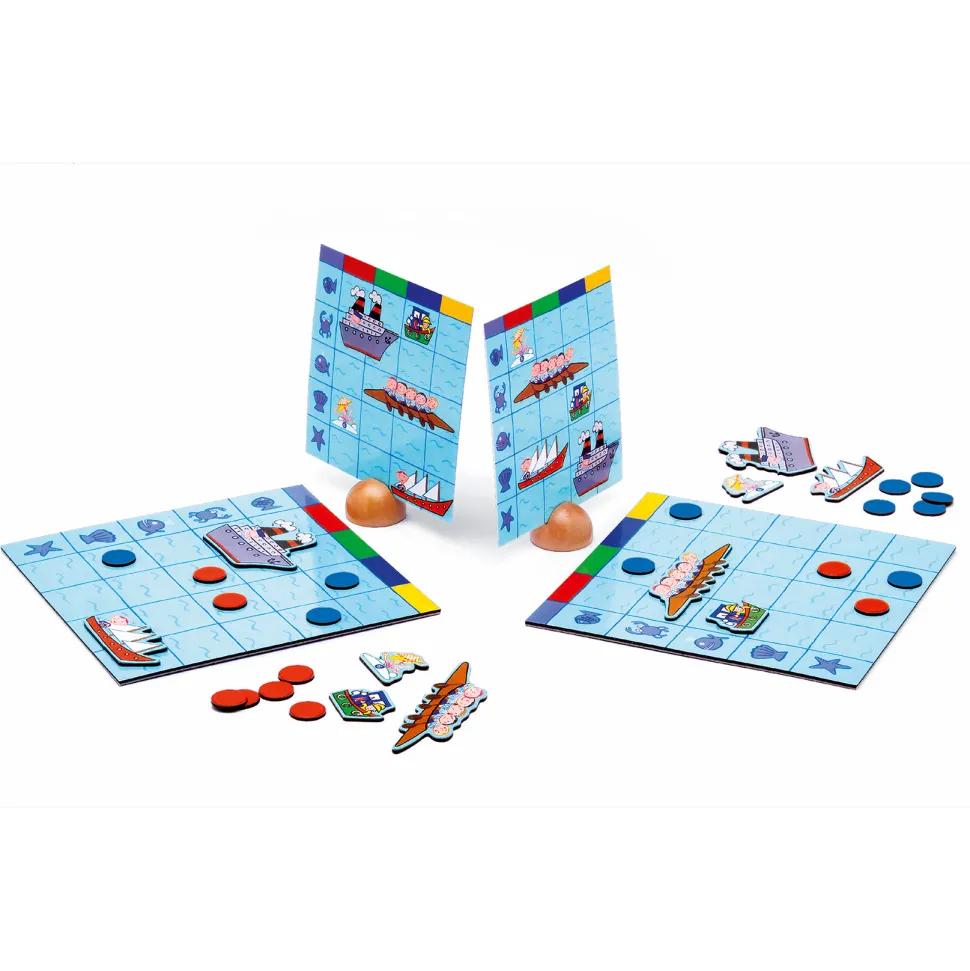Un jeu de bataille navale magnétique spécialement conçu pour les petits marins en herbe ! Le codage des grilles est simplifié, les lettres et les chiffres ont été remplacés par des animaux et des couleurs.