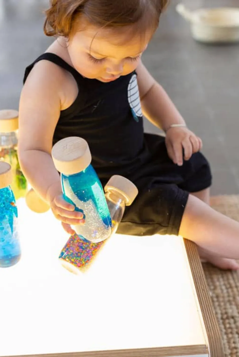 Petit Boum a attrapé une à une les couleurs de l’arc-en-ciel pour créer ces flacons magiques. Jeux de lumière, pompons, paillettes et étoiles, agite et observe-les pour entrer dans un monde calme, relaxant et laisse voler ton imagination ! Votre bambin regardera les éléments se mélanger et manipulera la bouteille, la fera rouler… Dès 3 mois, cette bouteille attrayante pour bébé stimulera sa concentration, sa vue, son ouïe et sa motricité fine. Fabriquée à la main et avec amour en Espagne, chaque bouteille sensorielle Petit Boum contient un univers de découvertes, couleurs, lumière et magie pour les enfants de 3 mois… à 99 ans ! Les bouteilles sensorielles Petit Boum respectent les normes européennes les plus strictes et peuvent être manipulées et mâchouillées en toute sécurité. De plus, elles sont incassables et parfaitement scellées grâce à un système de double bouchon. Elles sont fabriquées à partir de plastique recyclable, d’éléments naturels (riz haché et vermicelles colorés, grains de maïs etc.), de petites figurines et d’un bouchon en bois d’érable, le plus résistant et flexible. 90% des fournisseurs sélectionnés par la marque sont locaux afin de réduire l’impact environnemental des bouteilles.