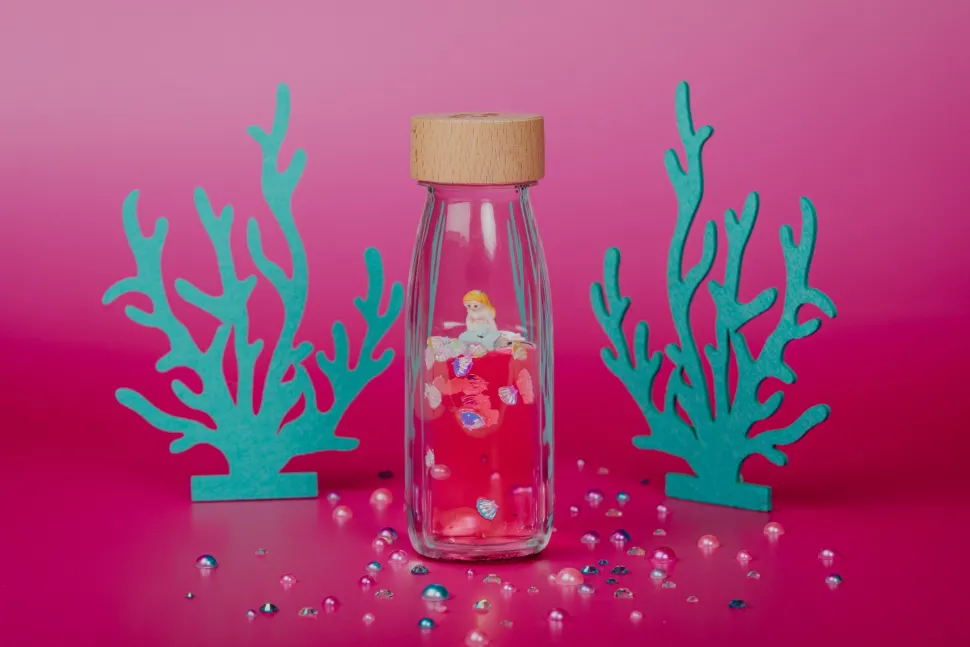 Cette nouvelle bouteille Move à effet loupe cache un univers marin plein de surprises. Secoue-la, jette un coup d’œil à l’intérieur et découvre les merveilles des fonds marins. Au milieu des bulles, des mollusques et des paillettes, vous verrez nager la protagoniste de cette histoire, notre belle sirène. Est-ce vrai ce que l’on dit de sa voix énigmatique ?Des rêves pour flotter… Qu’est-ce que cela ferait d’enfermer un rêve dans une bouteille ? C’est ce que nous avons voulu découvrir dans cette série. Nous allons plus loin dans la recherche de nouvelles limites sensorielles, avec un nouveau liquide à effet flottant que vous allez adorer. Chaque fois que vous secouez la bouteille, le voyage commence ! Planètes, astronautes, animaux… se mettent à flotter au gré des variations de densité du liquide, dans une rêverie pleine de bulles qui capte leur imagination et les aide à se détendre.