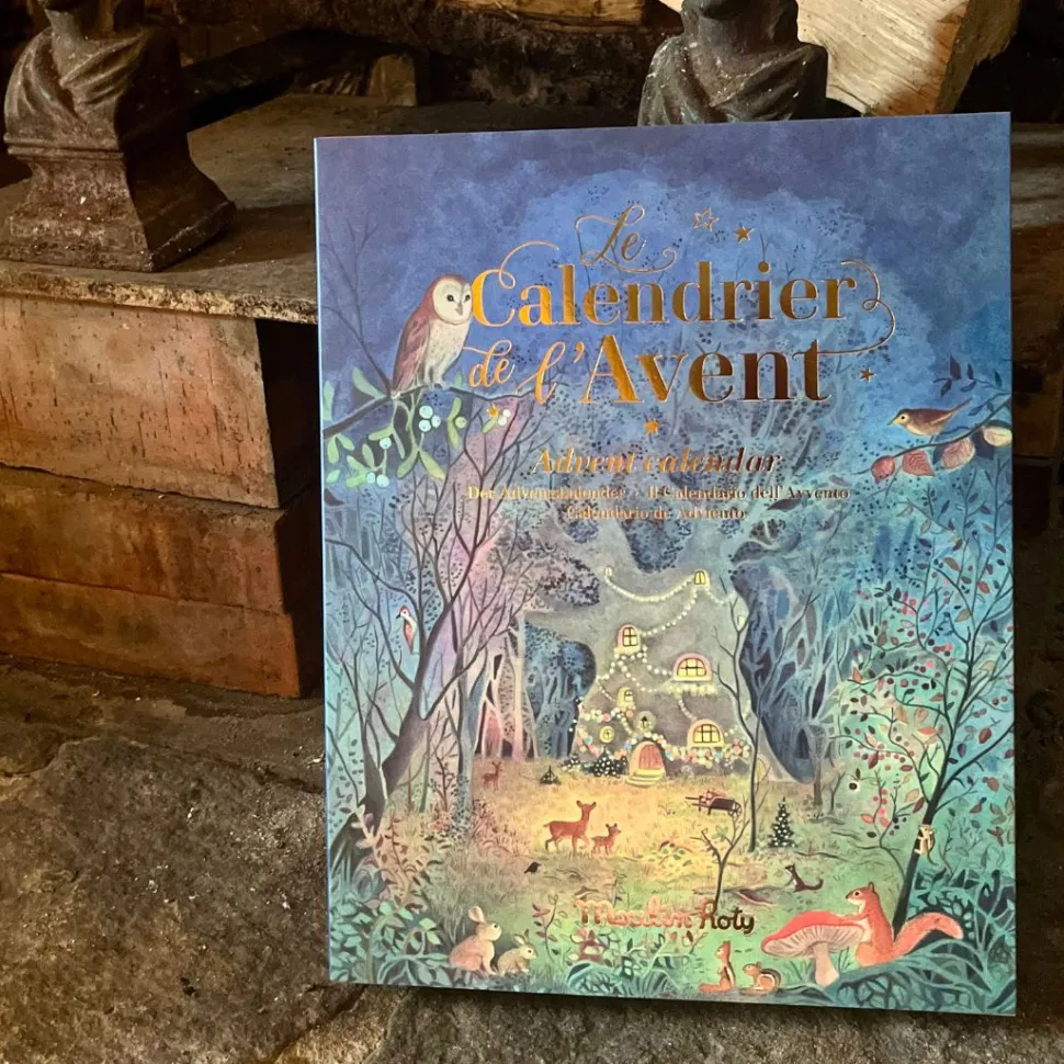 Calendrier de l’Avent illustré par Camille Jourdy. Il contient une lampe à histoires et 23 disques. Chaque soir, découvrez une nouvelle aventure à projeter en attendant Noël. 11 collections iconiques Moulin Roty à découvrir.
