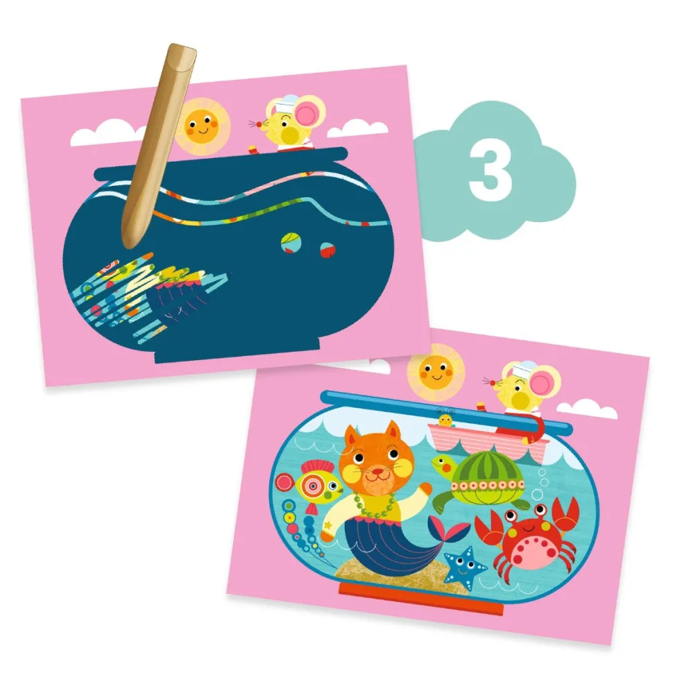 Voici un coffret très complet proposant 6 activités créatives et de nombreux projets pour des enfants dès 18 mois. Collage, coloriage, carte à gratter… Il y en a pour tous les goûts ! Des heures d’activités manuelles pour découvrir différentes techniques de création. Tous les accessoires sont fournis pour que l’enfant réalise chacune des activités au rythme de ses envies et de sa curiosité. Le livret détaillant pas à pas chacune des réalisations le guidera dans ses créations.