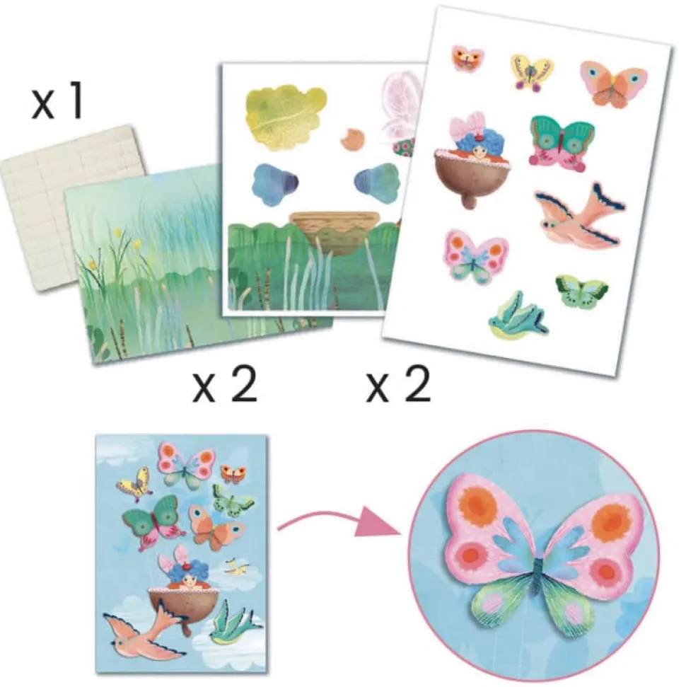 Voici un coffret très complet proposant 6 activités créatives et de nombreux projets sur le thème des fées : peinture, dessin, collage, maquettes en volume, cartes à gratter, tableaux 3D. Il y en a pour tous les goûts ! Des heures d’activités manuelles pour découvrir différentes techniques de création et s’immerger dans le monde merveilleux des fées. Tous les accessoires sont fournis pour que l’enfant réalise chacune des activités au rythme de ses envies et de sa curiosité. Le livret détaillant pas à pas chacune des réalisations le guidera dans ses créations. Contenu : Peinture : 1 planche à peindre, 1 palette de 8 pastilles de gouaches et son pinceau. Cartes à gratter : 4 cartes à gratter silhouettées avec effet métallisé iridescent + 1 stylet en bois. Animaux à monter : 4 planches de pièces en carton prédécoupées à détacher puis assembler. Collages : 1 planche de travail imprimé, 1 planche de stickers de mousse adhésive double face, 4 feuilles de paillettes de couleurs différentes Dessin : 1 panneau triptyque à compléter, 13 tampons mousse, 1 encreur violet, 1 stylo gel couleur or. Saynètes 3D : 2 planches de travail, 2 planches imprimées prédécoupées d’éléments de papier à détacher puis coller, 1 planche de stickers mousse double face. 1 livret d’explications pas à pas en couleurs.