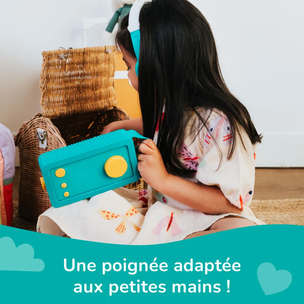 Cette coque de protection en silicone de Lunii protège Ma Fabrique à Histoires des chocs et des chutes inhérentes à la vie de l’enfant. Sa poignée spécialement conçue pour les petites mains permet aux enfants de la transporter au quotidien. Lavable, elle est disponible en plusieurs coloris ! Fabriquée en silicone souple et résistant, la coque dispose d’une surface texturée pour favoriser son adhérence sur toutes les surfaces. Ma fabrique à histoires vendue séparemment.