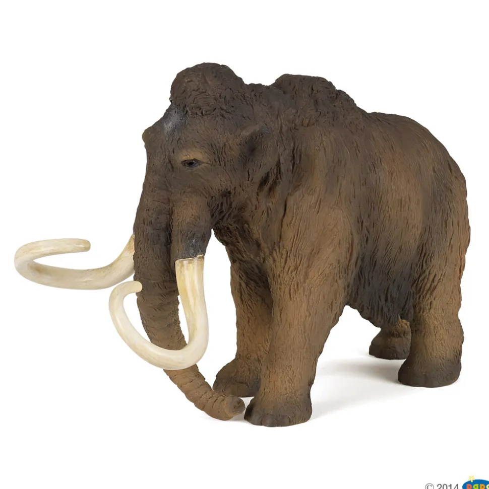 Avec sa trompe et ses immenses défenses, le Mammouth ressemble fortement à son cousin l’éléphant. Cet animal préhistorique s’est éteint il y a plus de 10 000 ans et fait partie des animaux disparus les mieux connus, notamment grâce aux fossiles très bien conservés retrouvés enfouis dans les glaces. Originaire d’Afrique, les mammouths se sont ensuite répandus plus largement, en Eurasie, en Amérique du Nord et dans les plaines de Sibérie. Ce mammifère possédait une épaisse fourrure pour lutter contre le froid et parfois même un véritable manteau de laine chez le mammouth laineux. Ses grandes défenses recourbées pouvaient atteindre jusqu’à 3 m de longueur et servaient entre autre à fouiller le sol pour trouver de la nourriture. On suppose que le réchauffement climatique est à l’origine de leur extinction. Saviez-vous que l’on retrouve des peintures de mammouths sur des fresques ? Chassés par les hommes préhistoriques, les mammouths figurent dans des scènes de chasse et décorent les parois de magnifiques grottes.