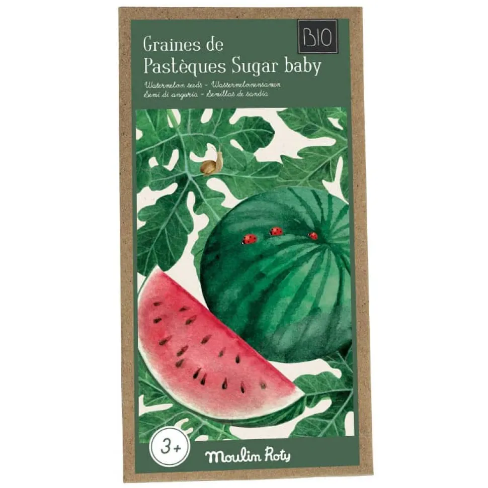 Pour petit jardinier en herbe ! Graines de pastèques à semer, présentées dans un ravissant sachet illustré aux couleurs de la gamme. Semis : de mars à mai. Culture : au stade ‘3 feuilles’, repiquer dans un endroit chaud en espaçant de 1 m en tous sens. Exposition chaude et ensoleillée. Récolte : de juin à septembre.