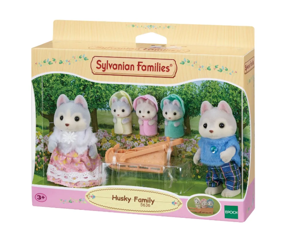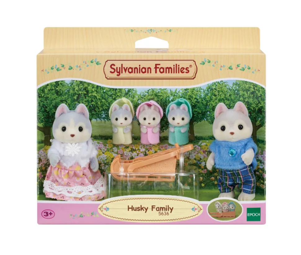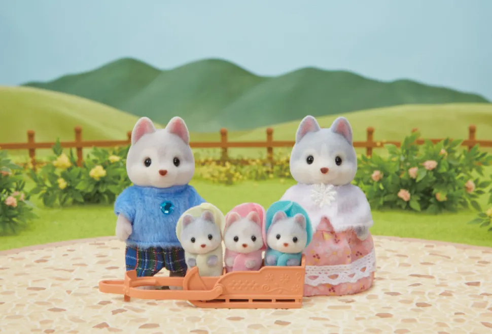 La famille Husky est composée de 5 personnages : la maman, le papa et les triplés. Ils sont tous articulés et habillés avec soin. Leurs vêtements peuvent être enlevés et remis à loisir.