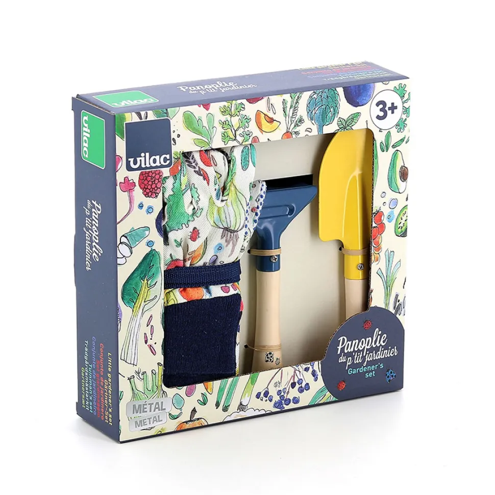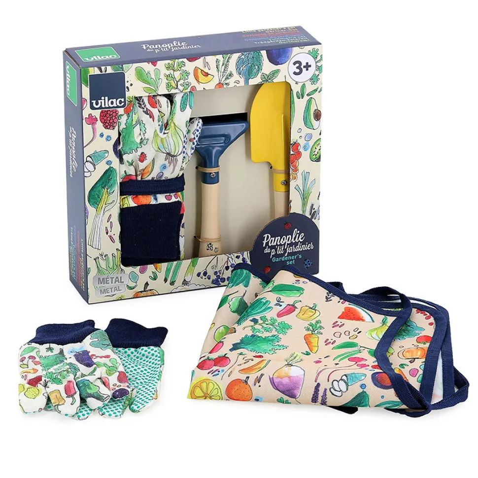 Comme les grands !Ce coffret de jardinage comprenant un transplanteur, 1 râteau, 1 paire de gants ainsi qu’un magnifique tablier, est idéal pour s’initier aux joies du jardinage.Avec des outils de qualité adaptés à sa taille, votre enfant peut creuser, planter, et s’occuper des plantes avec enthousiasme.En s’amusant avec nos outils et en vous aidant dans le jardin, votre enfant sera fier de faire comme vous et pourra en apprendre davantage sur les cycles de vie des plantes, le rôle des insectes pollinisateurs et l’importance de prendre soin de la terre.On protège mieux ce qu’on connaît !