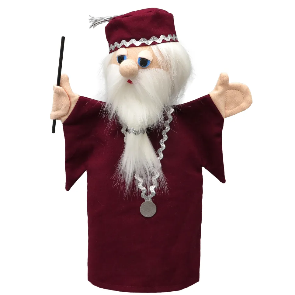 Dès la Renaissance (XVIe siècle), les marionnettes accompagnent les vendeurs ambulant pour attirer le chaland. Au XVIIe siècle, le théâtre de marionnette est synonyme de théâtre comique et un moyen d’expression contre le pouvoir de l’époque. Fabriqué en Europe depuis 1909 ! Voici la marionnette Mage Dumbledore 27 cm.