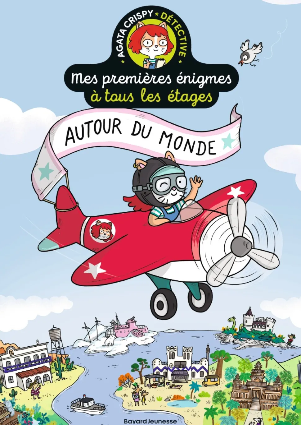 Voici 8 nouvelles enquêtes d’Agata Crispy. La célèbre chatte détective de Matouville doit résoudre des enquêtes sur les cinq continents. Chacune des énigmes est indépendante et se situe dans un lieu différent dont le tour du monde est le fil rouge… Chaque enquête est développée sur 4 pages. La première pose l’énigme. Deux grands rabats présentent le décor dans sa version extérieure, puis dans sa version intérieure quand on les soulève. Sous les rabats, on découvre les témoins et les suspects ainsi que les questions auxquelles il faut répondre pour avancer dans l’enquête.