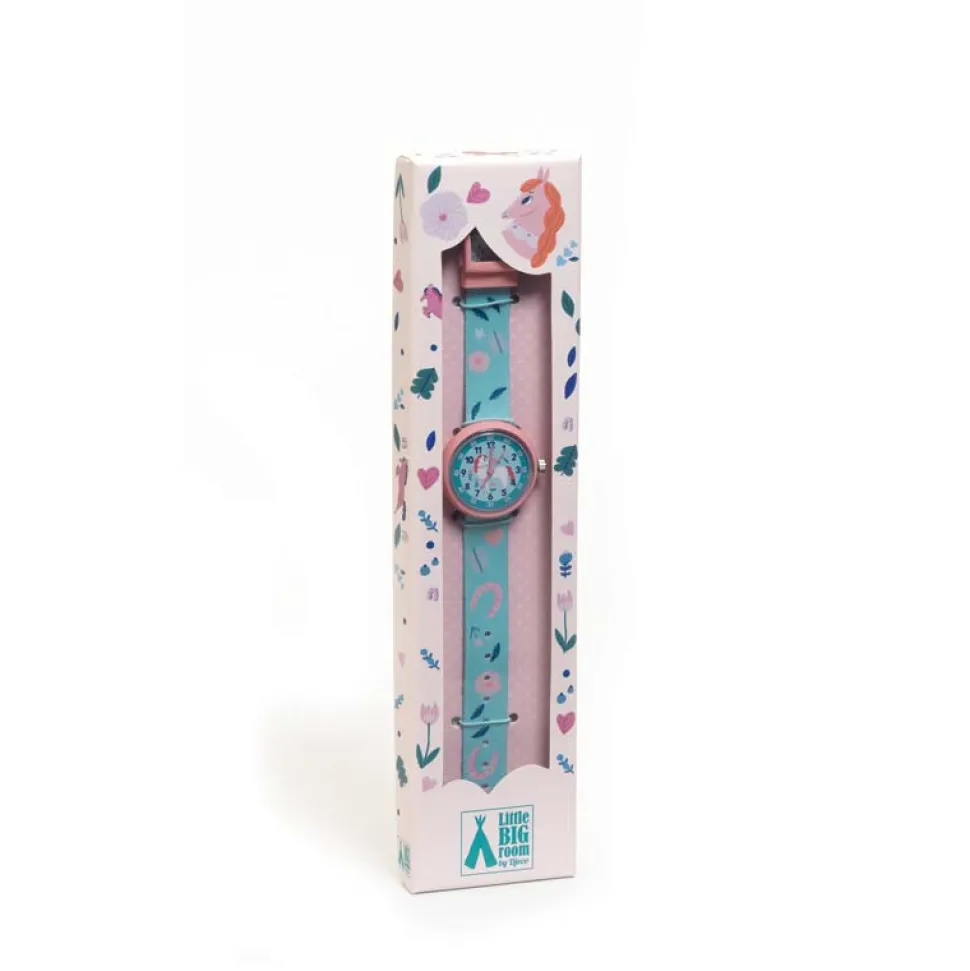 Une montre à quartz élégante et joliment illustrée sur le thème du cheval pour apprendre à lire l’heure. Une montre pédagogique avec deux cadrans bien distincts (un pour les heures, l’autre pour les minutes) et des aiguilles fines pour faciliter la lecture de l’heure.Grâce au mouvement japonais Miyota 2035, le mouvement des aiguilles est silencieux. Une montre au boîtier antichoc et étanche jusqu’à 3 bar.Fonctionne avec 1 pile SR626SW fournie. Contenu : 1 montre à quartz avec un bracelet textile réglable, 1 pile incluse et 1 notice.