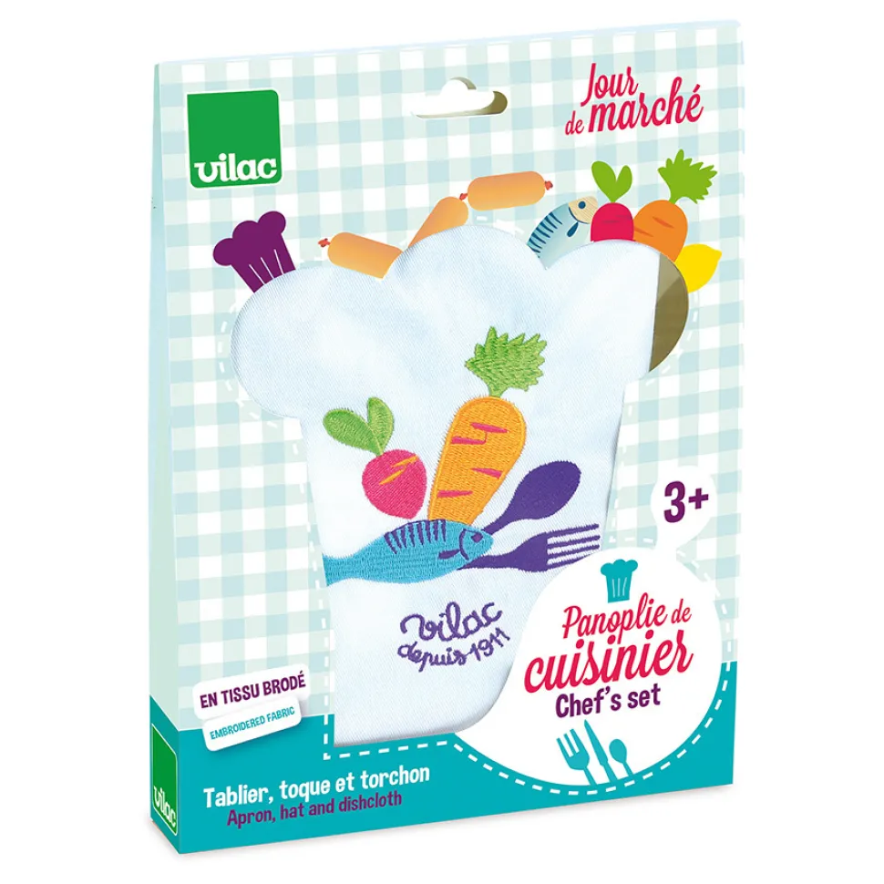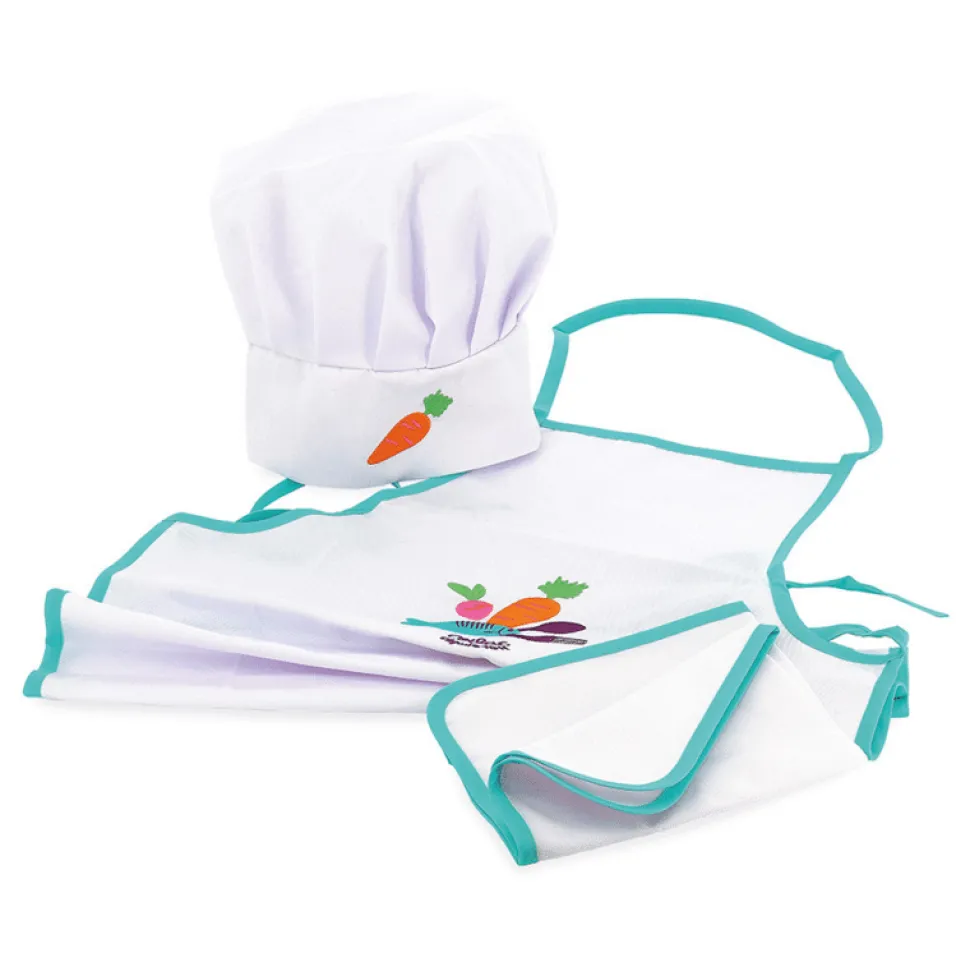 Un torchon,un tablier, et une toque, les accessoires indispensables pour devenir un vrai petit marmiton !
