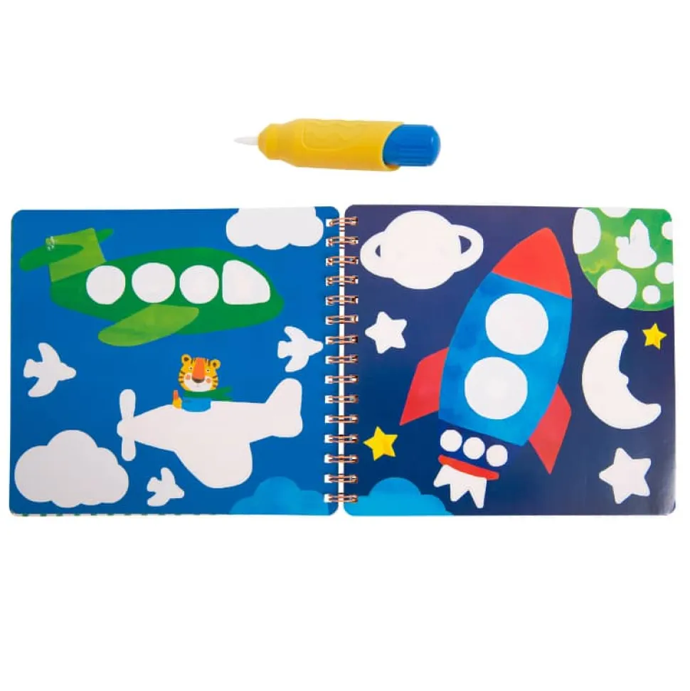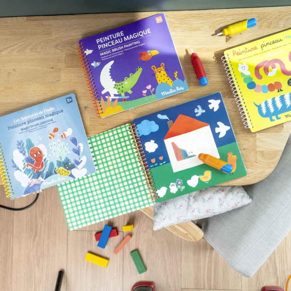 Grâce à un pinceau magique avec réservoir d’eau, peignez les zones blanches sur chaque page pour faire apparaître comme par magie les illustrations joyeuses des Popipop ! Réutilisables, les dessins apparaissent puis disparaissent une fois secs !