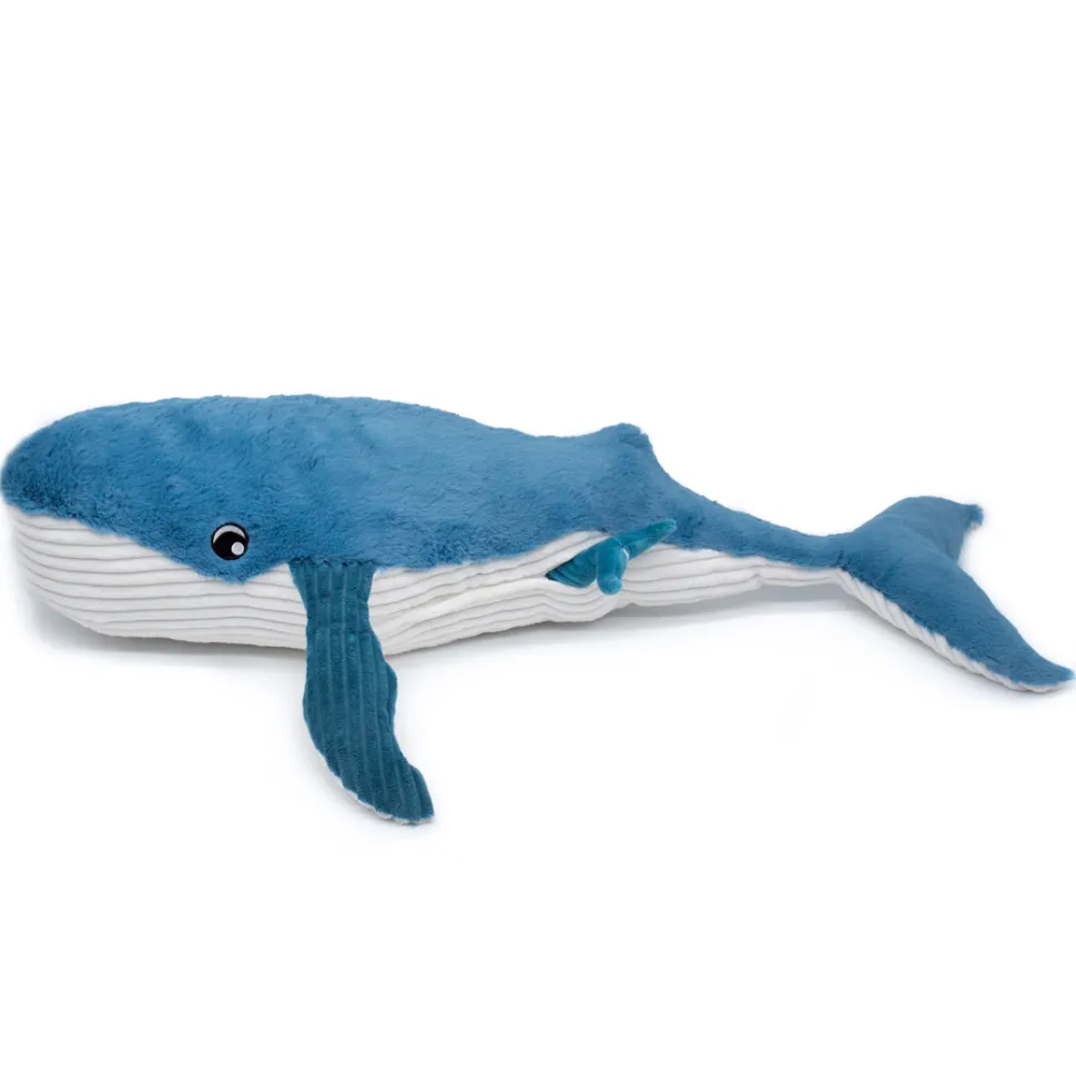 Une baleine géante de 75cm de douceur et son bébé à un prix tout doux. Rembourrage en polyester recyclé. Coucou, moi c’es Gravillou. Avec moi il n’y a jamais d’anguille sous roche. Tu peux me faire totalement confiance ! En même temps, c’est compliqué de se planquer derrière un caillou quand on est l’animal le plus grand au monde. Même mon bébé qui se cache dans ma poche latérale ne pourrait pas le faire.Convient dès la naissance