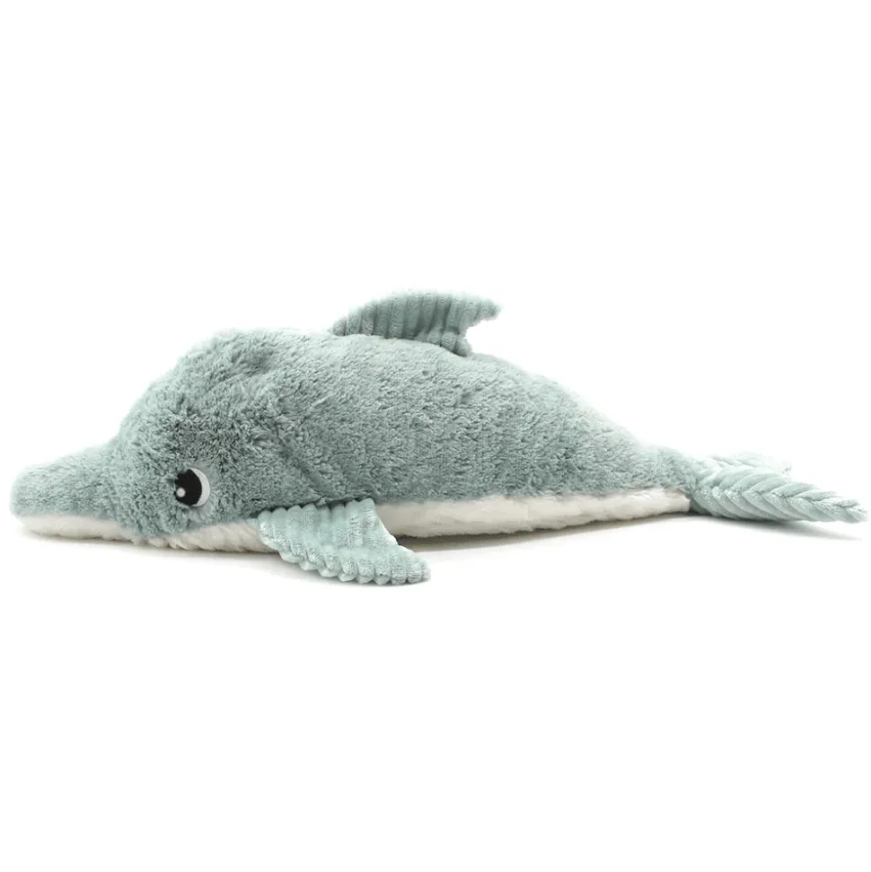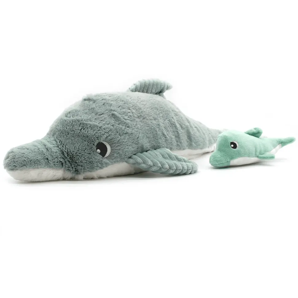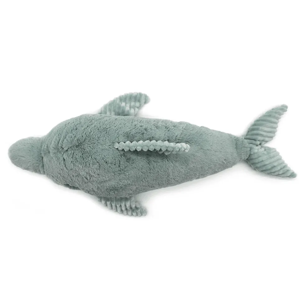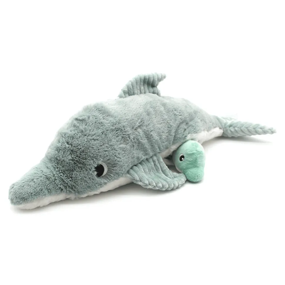 Je suis Tofou, le premier dauphin végétarien. Avec moi mon ami, pas de sushis ! Chef étoilé des océans…je manie les couteaux de mer comme les plus grands ! Cerise sur le gâteau, un petit apprenti cuisto m’accompagne quand je suis sous l’eau. Laisse-toi succomber par mes recettes de bisous saupoudrées de câlinous.La peluche dauphin Ptipotos de 50 cm couleur vert menthe est vendue avec son bébé caché dans son ventre.