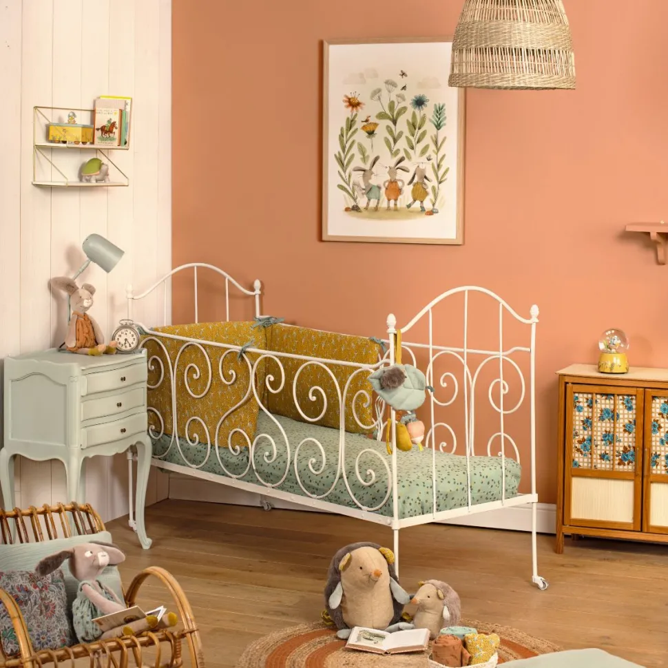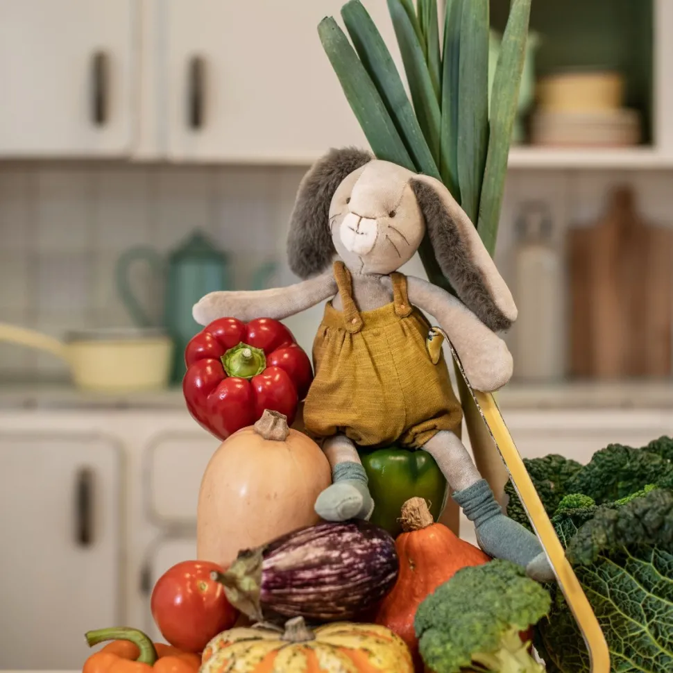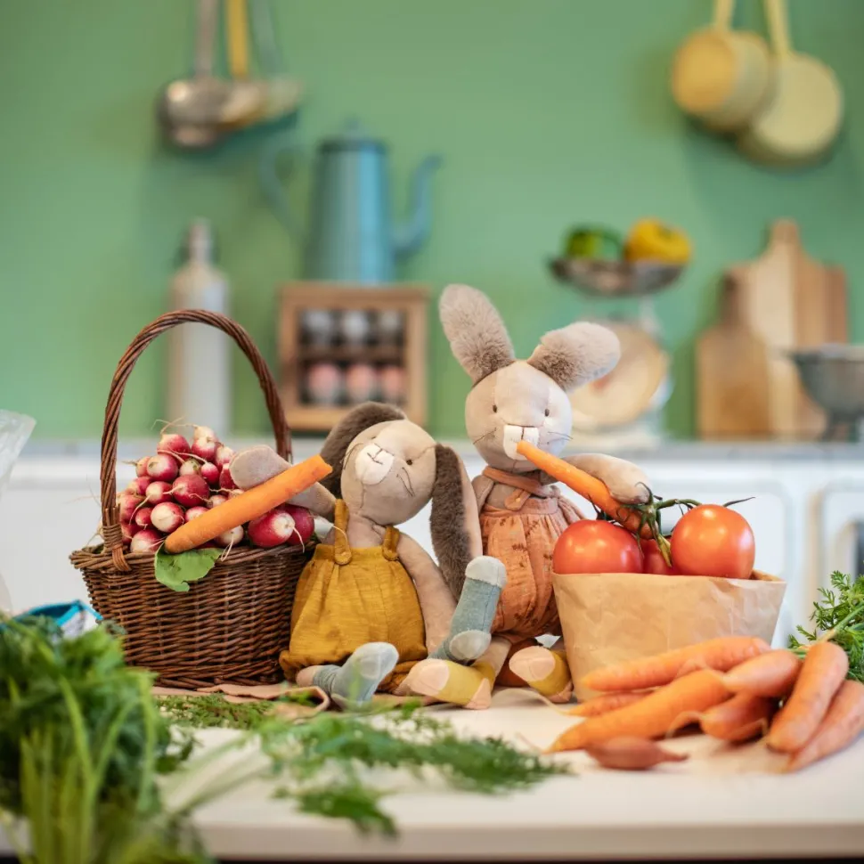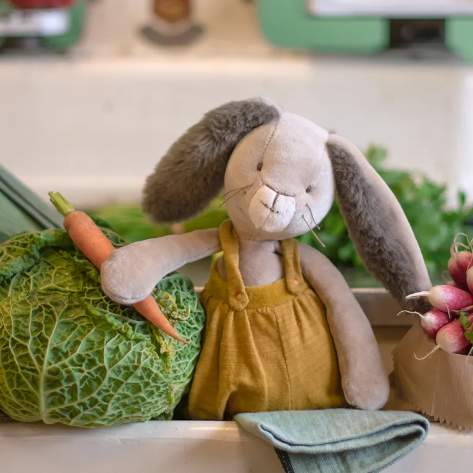 Avec sa frimousse à moustaches et ses grandes oreilles toutes douces, cet adorable lapin à la salopette ocre ne demande qu’à faire des câlins ! Compagnon de jeu la journée et doudou protecteur la nuit, il accompagnera bébé dans toutes ses aventures.