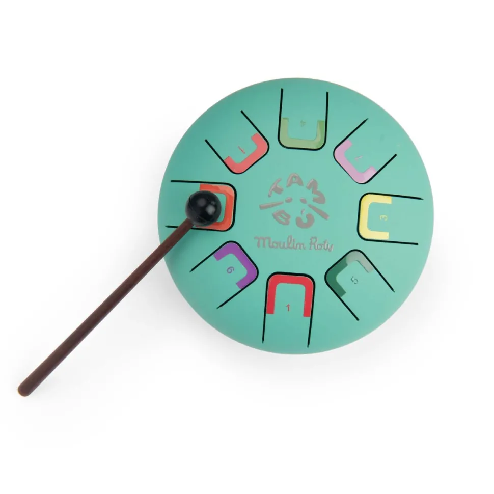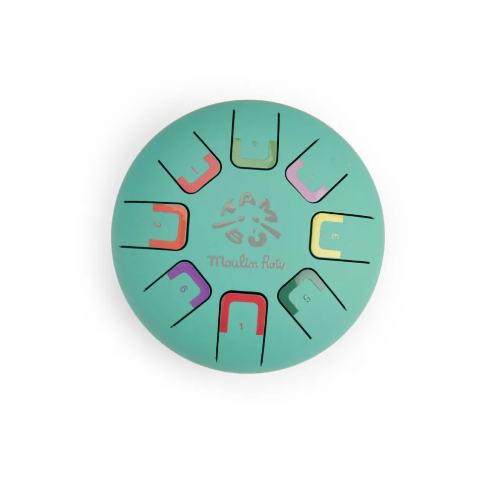 Le petit tambour à languettes de la collection Dans la Jungle de Moulin Roty est l’instrument idéal pour initier les enfants aux percussions à partir de 3 ans. Les 8 notes peuvent être jouées de plusieurs façons. A l’aide des baguettes, des mains ou des pics à doigts. Cet instrument, aussi appelé Tongue drum, contribuera à l’éveil musical de votre enfant.