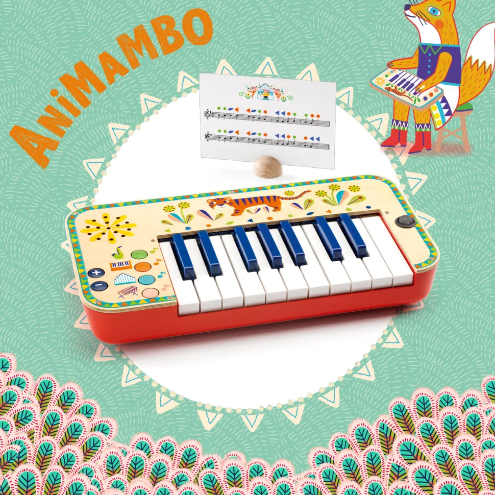 Le synthétiseur Animambo Djeco est un instrument de musique enfant ludique et coloré, spécialement conçu pour les enfants à partir de 3 ans. Orné d’un magnifique tigre et d’illustrations captivantes, il invite à la création musicale.